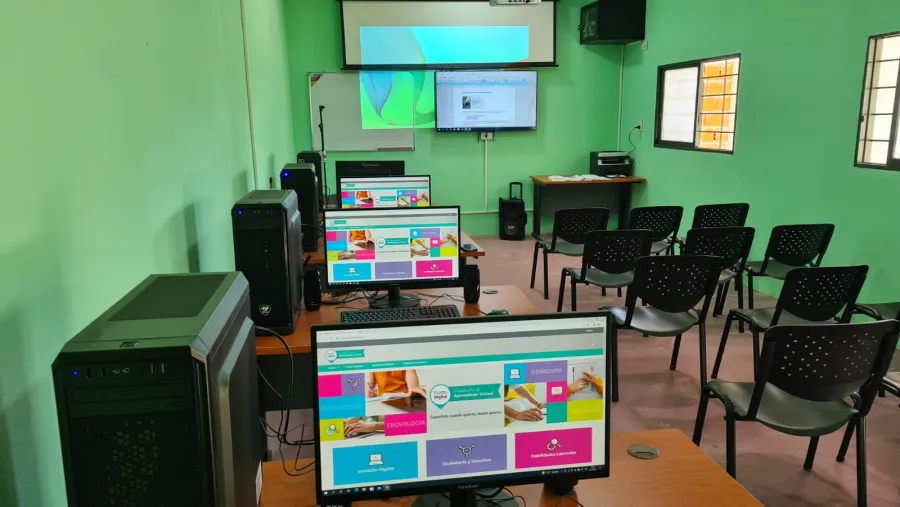 El Punto Digital implicó la restauración de una sala con conexión a internet e incorporación de cuatro computadoras de escritorio completas, una impresora multifunción, un proyector de 3600 lúmenes, una pantalla proyector, un Smart TV de 50 pulgadas tipo LED y un bafle portátil. Además, se equipó con cinco escritorios rectos, una pizarra y 20 sillas.