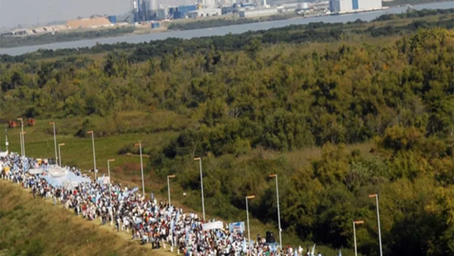 Se realizará este domingo la ya tradicional Macha al Puente Internacional “General San Martín” que impulsa la Asamblea Ciudadana Ambiental de Gualeguaychú contra la instalación de la pastera UPM (ex Botnia) en Uruguay. La concentración será a las 16 en el paraje histórico “Arroyo Verde” sobre el kilómetro 28 de la Ruta Nacional N° 136, desde donde partirán en caravana automovilística; de regreso, leerán la proclama en el refugio, para luego llegar a la costanera y reunirse en los obeliscos.