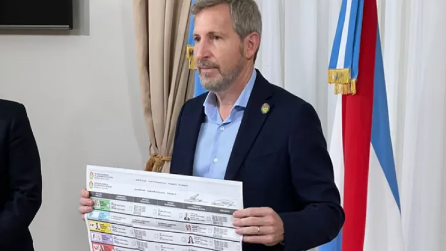 Frigerio junto a los funcionarios que lo acompañaban mostraron un ejemplo de boleta única: “Pueden votarla completa o ir a cada una de las secciones en forma particular”.