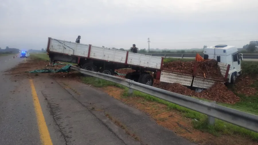 El siniestro vial ocurrió en jurisdicción de la Comisaría Séptima de la Jefatura Departamental Gualeguaychú.  Un camión Iveco, modelo 450 con semi Randon, despistó sobre la cinta asfáltica. El vehículo llevaba chip y viajaba de Norte a Sur y quedó en el cantero central de la ruta.