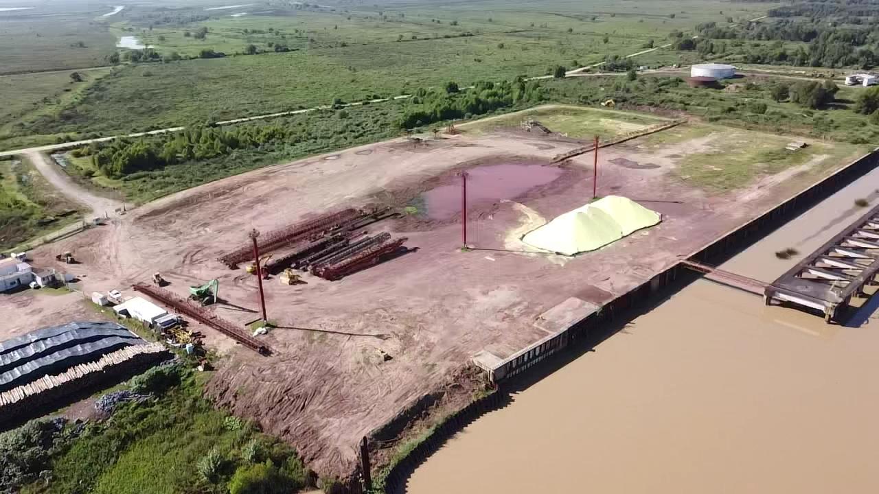 A fines de marzo, el integrante de la Brigada de Respuesta Ambiental de la Secretaría de Ambiente de la provincia, Ángel Melchiori, realizó una inspección en este sector del puerto y se encontró con una montaña de azufre ubicada apenas sobre un nailon negro, a solo dos kilómetros de la zona urbana. Además, a un costado del área de la empresa había una máquina excavadora haciendo un zanjón enorme para desagotar el agua acumulada sobre el suelo hacia una zona baja natural con vegetación, que generalmente se llena de agua cuando el río crece.