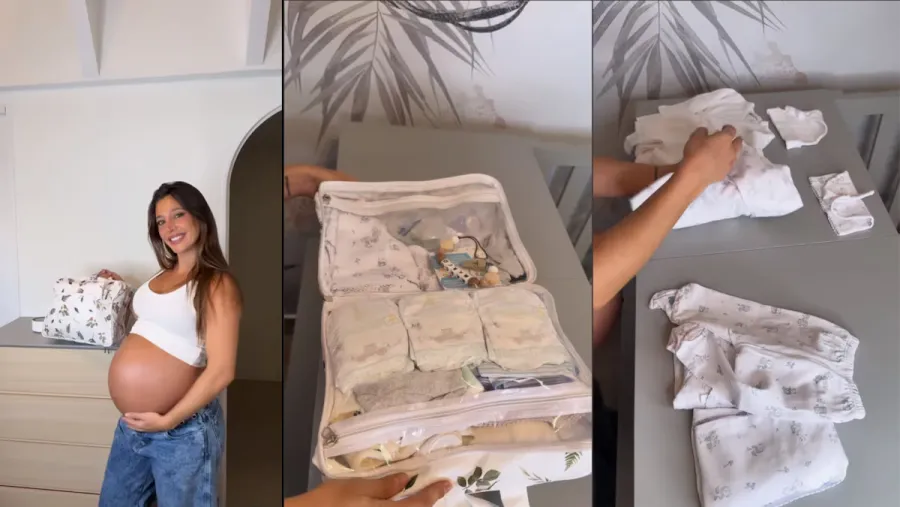 En el bolso también hay tres batitas, un conjunto “entero”, medias (tres pares), babitas, una manta, y una pequeña colección de posibles “primeros looks” para el regreso a casa. “Estos son para elegir con cuál sale del hospital, ¿cuál les gusta más a ustedes?”, fue la consulta que le hizo a sus seguidores, buscando compartir con ellos no solo la emoción, sino también la decisión estética del gran día.