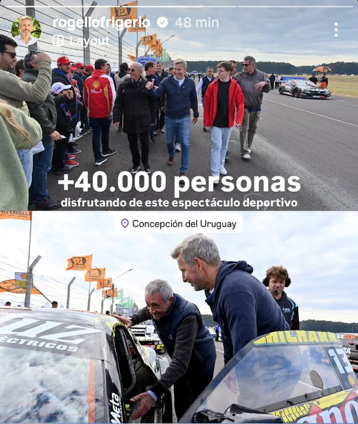 Rogelio Frigerio, quien estuvo en Alemania en la primera semana de julio realizando actividad institucional, no viajó a acompañar a su hijo a las pruebas en Italia. No obstante, se mostró cercano al deporte motor al participar del fin de semana de TC que se desarrolló en Concepción del Uruguay.