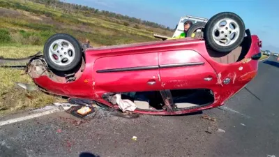Villa Elisa: un automóvil chocó contra un acoplado y dio varios tumbos en la ruta 130