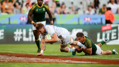 Este sábado, la selección argentina de rugby seven masculino acabó segunda en el Grupo C y jugará por el quinto puesto. Esto se debe a que venció a Irlanda, pero perdió ante Sudáfrica, por lo que no accedió a las semifinales. Su próximo rival será Kenia, al que enfrentará a las 6.22 del domingo.