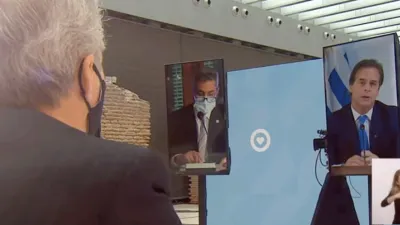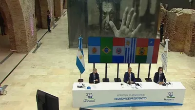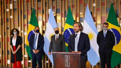 En la cena del viernes, ofrecida por el presidente Fernández y la primera dama, Fabiola Yañez, estuvieron presentes los cancilleres de Argentina y Uruguay, Felipe Solá y Francisco Bustillo, respectivamente.