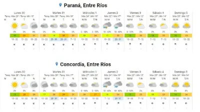 Anuncian una semana calurosa en Entre Ríos con probables tormentas aisladas El SMN pronostica un aumento de temperaturas a mediados de semana cercanas a los 30 grados. Hay probabilidad de precipitaciones que darán un pequeño alivio.